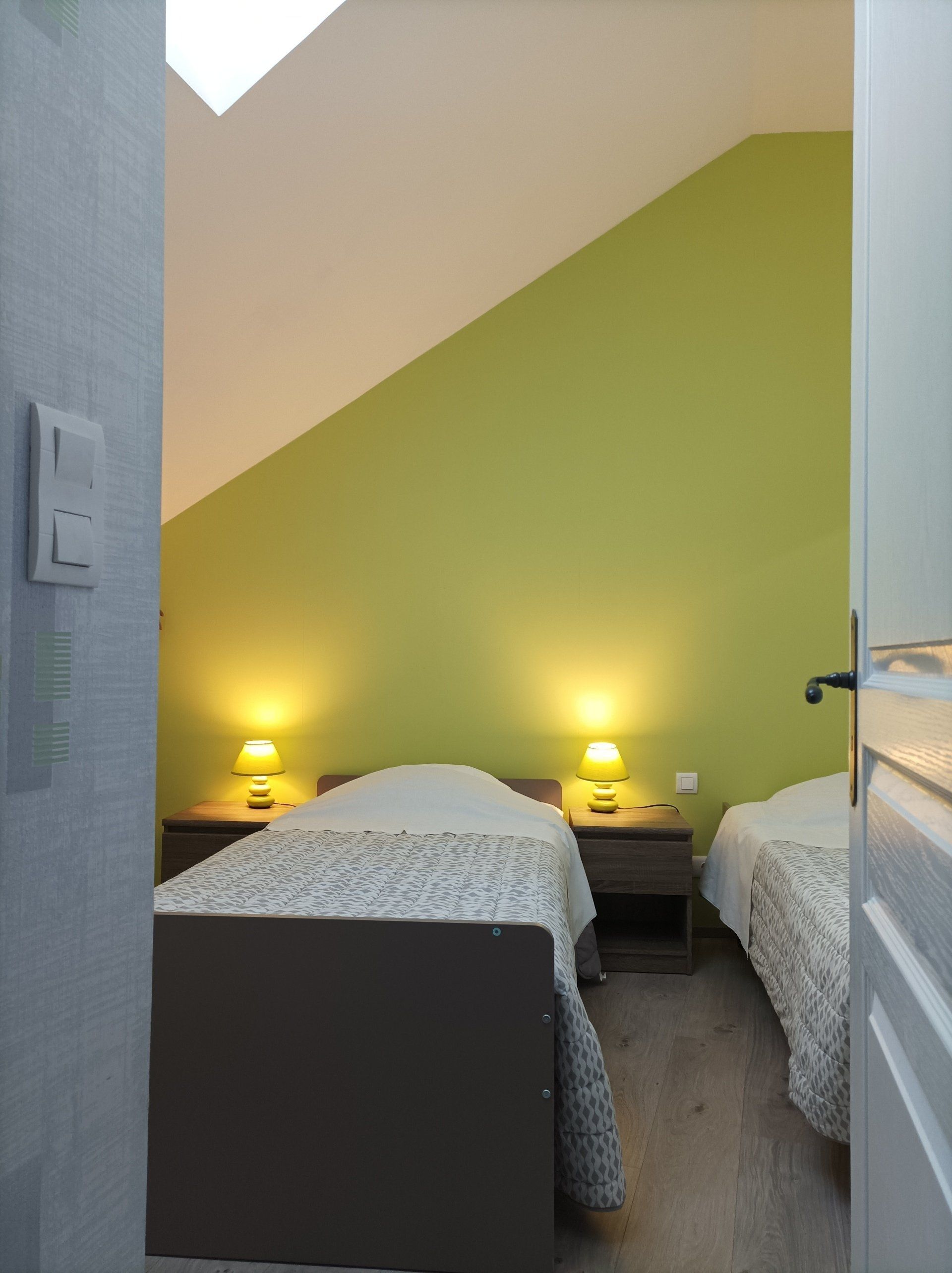 - A l'étage, 1 chambre avec lit 2 personnes 160 X 200, 1 chambre avec 2 lits 1 personne 90 X 190, Salle de douche, WC indépendant.